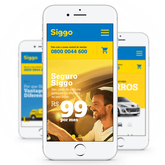 Redesenhamos a marca em todo o ambiente digital, do site as redes sociais, alinhando o discurso e posicionando a Siggo como uma empresa jovem e moderna, trazendo o conceito “Segurança por onde você for” em todos os pontos de contato da marca.